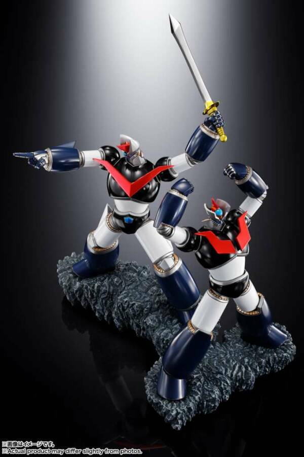 Dopo Goldrake e Jeeg Robot, arriva il terzo capitolo della serie dedicata ai robot Dynamic, dal design spettacolare, firmato dal celebre scultore Tomonobu Fuchi: ecco a voi il set DOUBLE MAZINGER, che riunisce Mazinger Z e il grande Mazinga in un’unica, imperdibile proposta da collezione. Le due figure sono completamente indipendenti e possono essere esposte singolarmente oppure insieme, offrendo numerose possibilità di display: fianco a fianco, schiena contro schiena o in pose eroiche che esaltano la loro potenza iconica. I dettagli di pregio non passano inosservati: le piastre rosse sul petto, la spada di Great Mazinger con lama argentata e impugnatura dorata, e la leggendaria Mazinger Blade, tutti impreziositi da una raffinata finitura metallica placcata che valorizza ulteriormente il set. Dai vita all’epico duo DOUBLE MAZINGER e porta nella tua collezione tutta la forza e il fascino di due leggende dell’animazione giapponese. Un must-have per ogni vero appassionato! ...e per i fan più esigenti, segnaliamo che è possibile creare un magnifico diorama con l'aggiunta del Ufo robot grendizer figuarts zero touche metallique scuito qualche mese addietro (ovviamnte NON incluso) ..