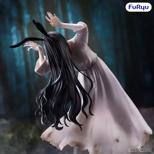 Fin dalla sua prima apparizione, nel film "Ring" del 1998, Sadako si è imposta come un'icona dell'horror giapponese! Furyu le dedica una nuova, originale, figura per la serie Bicute Bunnies: oltre ai lunghi capelli e all'abito bianco, questa Sadako ha orecchie da coniglietto e calze a rete!